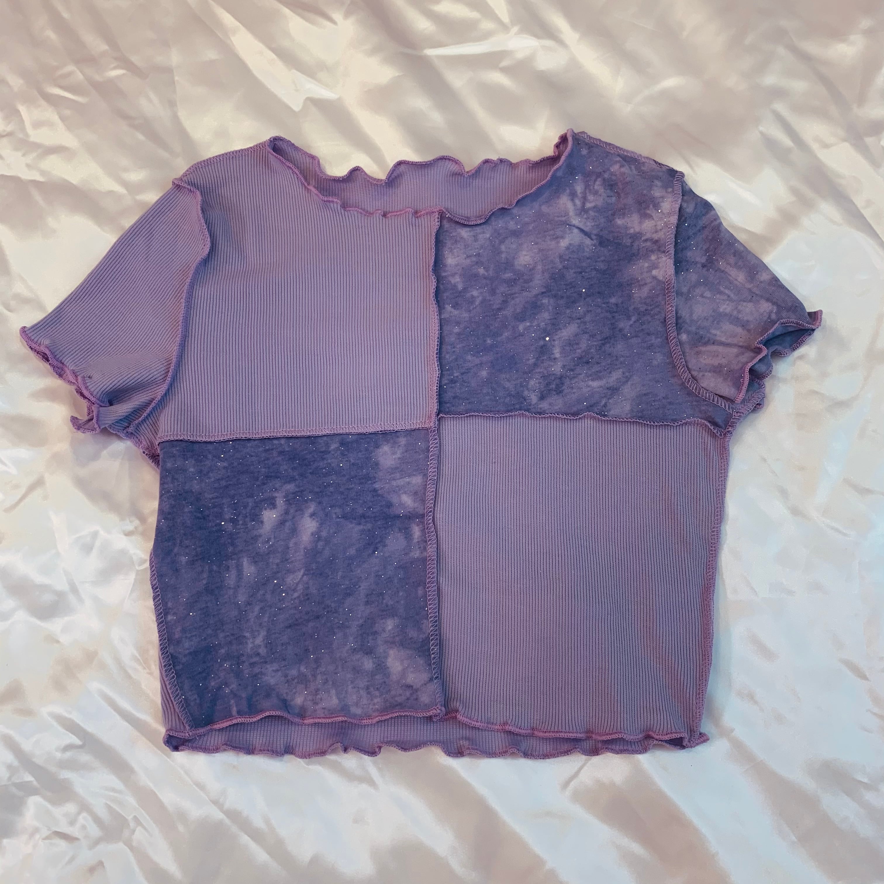 【送料無料】【即日・翌日発送】ラメが可愛いすぎる♪"リブニットTシャツ ピタT タイダイ柄 バイカラー ミニTシャツ ショート丈Tシャツ