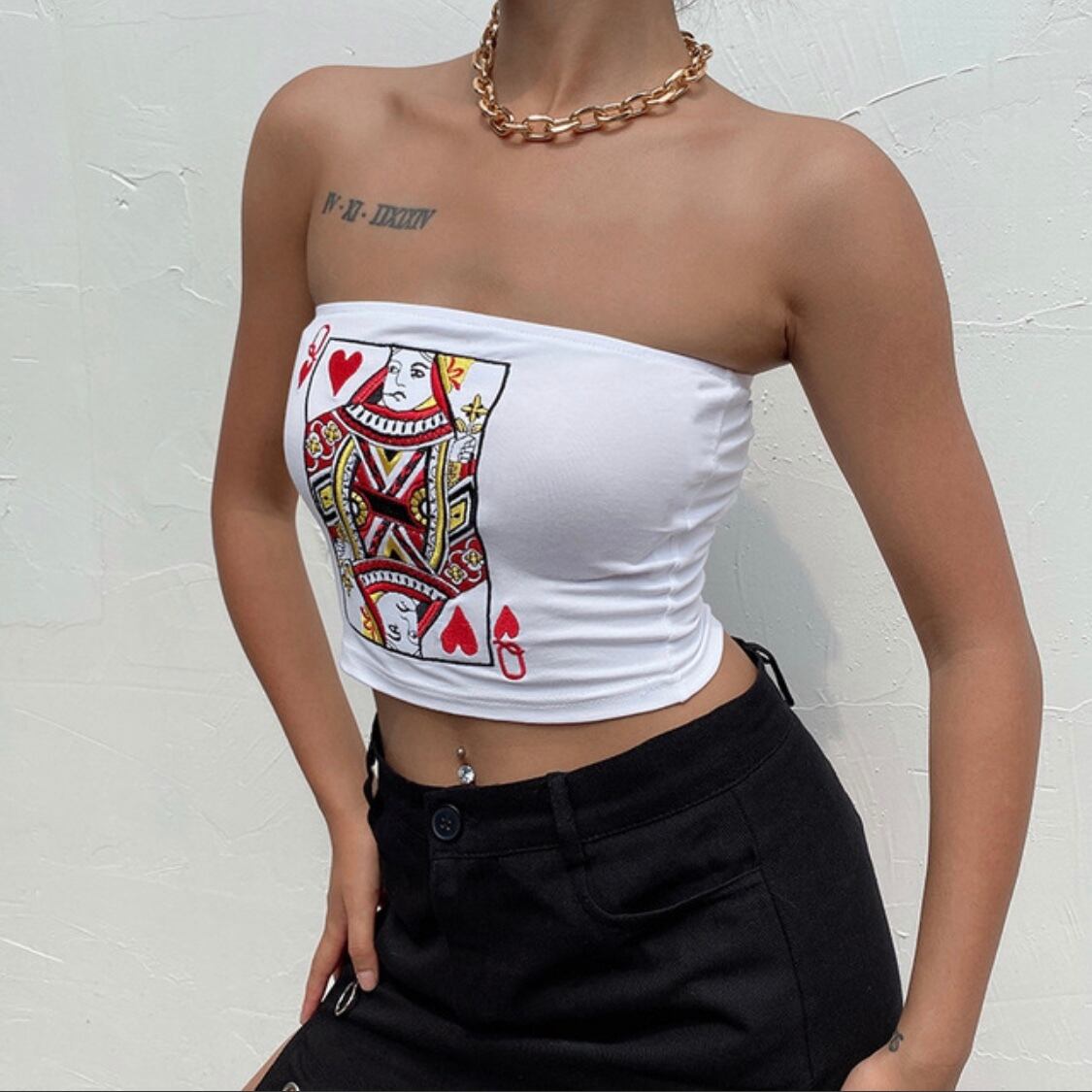 【送料無料】【即日・翌日発送】トランプの刺繍が可愛い☆"チューブトップ ベアトップ 刺繍 トランプ柄